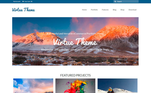 Virtue - универсальная тема с множеством функций. Легка в настройке. Современный дизайн построен на html5 и css3. Идеально подходит для любого вида бизнеса, интернет-магазина, портфолио или личного сайта.
