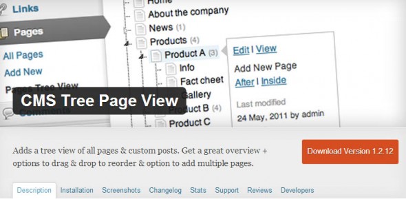 Этот плагин формирует удобное дерево с раскрывающимися списками, что решает проблему с отображением вложенных страниц. Можно добавлять новые страницы в нужном месте, также очень удобно перетаскивая страницы менять их иерархию.